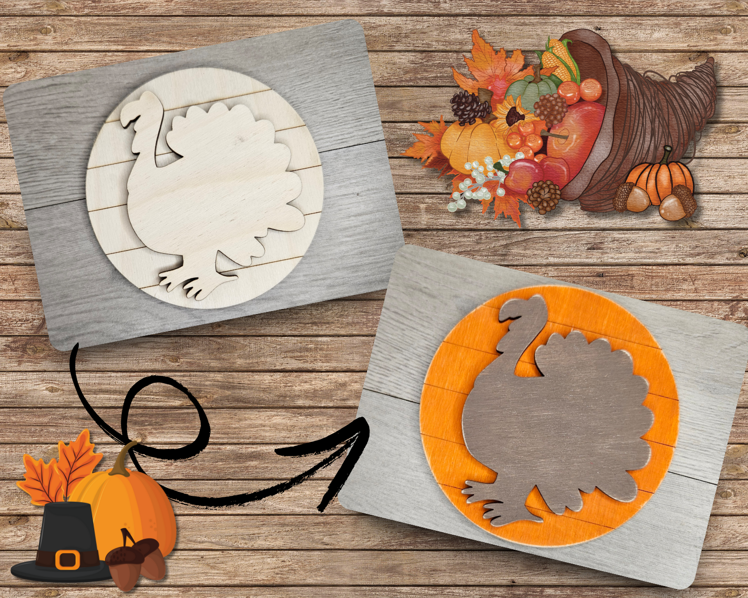 4 inch is cut on 1/8" birch, 10 inch & larger is cut on 1/4" maple